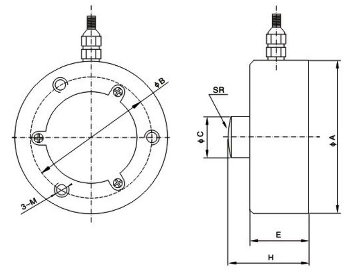 型號 | 量程(kN) | 量程(t) | ΦA | BΦ | ΦC | H | E | M | SR |